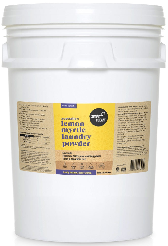 Simply Clean Lemon Myrtle Top and Front Loader Laundry Powder 15kg