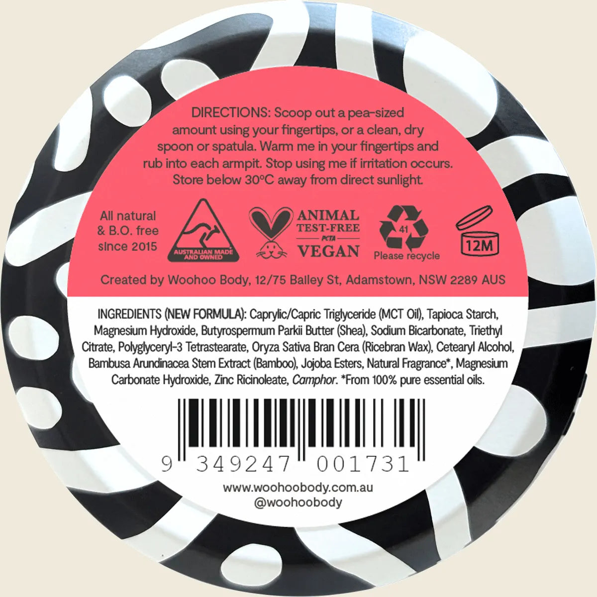 WOOHOO BODY All Natural Deodorant Paste (Tin) Urban 60g