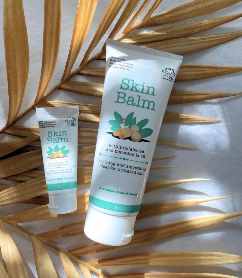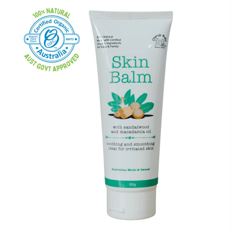 Cherub Rubs certified organic Skin Balm is a 100% natural, rich, and nourishing cream formulated to help prevent nappy rash and provide continuous protection while nourishing the skin. This organic skincare solution is perfect for use on sensitive skin, making it an essential part of any skincare for sensitive skin routine. It effectively addresses issues like eczema, dermatitis, chapped and dry skin, cracked nipples, and mosquito bites.